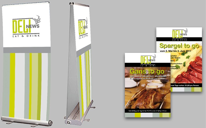 Deli News Flyer, 2seitig, DIN lang und DIN A6; Aufkleber 50 mm